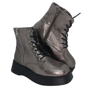 Steve Madden Womens NEW Designer Pewter Glitter Combat Boots w/Zipper - sz. 4