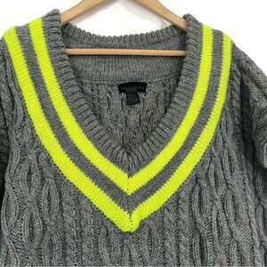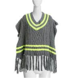 Steve Madden Womens Neon Stripe Poncho Sweater in Grey/Neon Yellow, ONE SIZE.