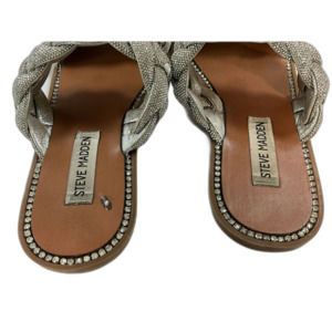 Steve Madden Women's Newbie Flat Sandal, Rhinestone, 9.5-Gently used