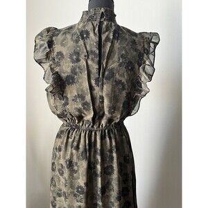 Steve Madden Women's Olive Floral Smocked-Neck Flutter Sleeve Maxi Dress Size L