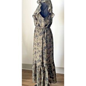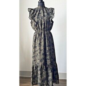 Steve Madden Women's Olive Floral Smocked-Neck Flutter Sleeve Tiered Maxi Dress Size L