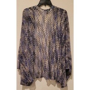 Steve Madden Women's Open Cardigan Kimono Chevron Gray Blue Metallic Gold OS
