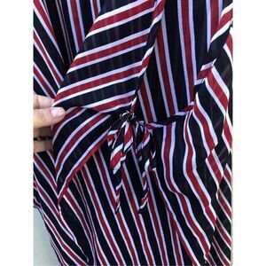 Steve Madden Women's Red Black White Stripe V-neck Side Knot Top Size OSFM