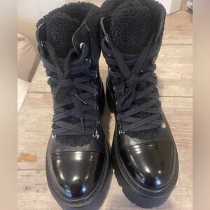 Steve Madden Women's Reyen Chunky Combat Grunge Boots Black Leather Sz 7.5
