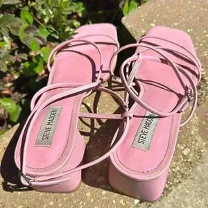 Steve Madden Womens Rianna Faux Leather Strappy Block Heels size 9