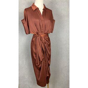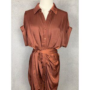 Steve Madden Women's Rust Button-Up Belted Tori Tie Midi Dress Size 2 NWOT's.
