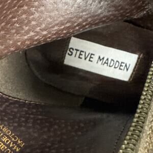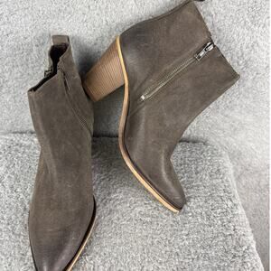 Steve Madden Women's Saarah Leather Booties in distressed dark taupe, size 10. Featuring a stylish stacked heel, these versatile booties offer a chic, modern look. New without box (NWOB).