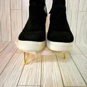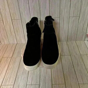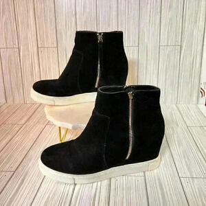 "Steve Madden Women's Wedgie Sneaker, Black, Sz 10 Leather Upper SADIO1S1. Double Zippers . White soles. As one of the most iconic brands in the footwear industry, Steve Madden offers the trend you're looking for at an accessible price point.