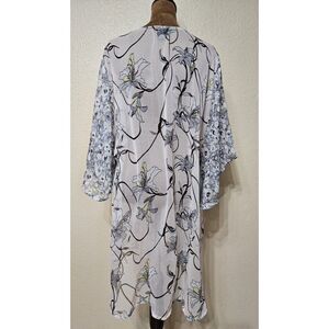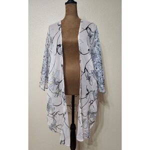 Steve Madden Women’s Sheer Floral Kimono Cardigan OSFM White Blue Lightweight