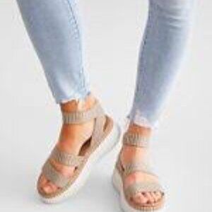 Steve Madden Womens Shelle Taupe/Cream Strappy Platform Wedge Sandal NWOB sz 11M
