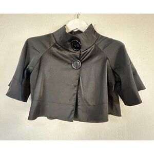 Steve Madden Womens Shiny Black Cropped Bolero Coat Jacket Medium Button Front