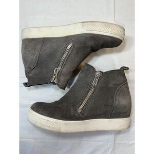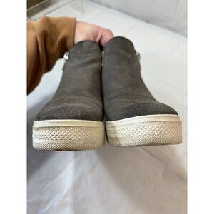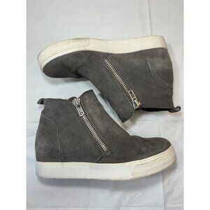 Steve Madden Womens Shoes 8.5 M Gray Wedge Ankle Close Toe Zip Heel Leather