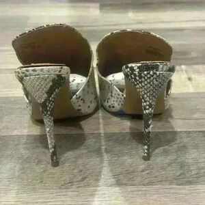Steve Madden Women’s Sinful Snake Print Slip On Stiletto Heels Open Toe Sexy