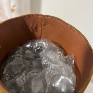 Has a bit peeling on the inside of one boot also a scratch on the heel. Please see all pictures.