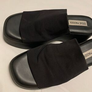 Steve Madden Women's Slinky 30 Black Slide Platform Sandals Y2K Sz 38 7.5 Italy