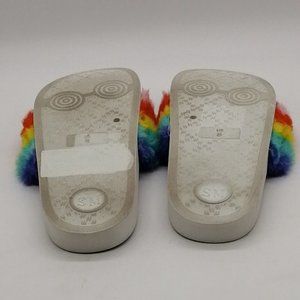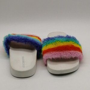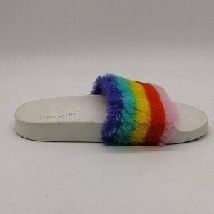 Steve Madden Womens Softy Flat Heel Slide Slipper Faux Fur Rainbow Colors Sz 8