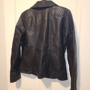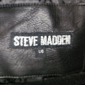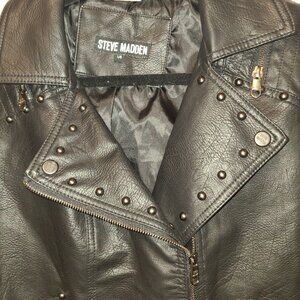Steve Madden Women's Studded Faux Leather Biker Jacket Black Large Zipper Accent