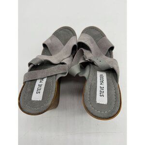 Steve Madden Womens Suede Platform Wedge Sandals Size 8 Grey Crisscross Strap