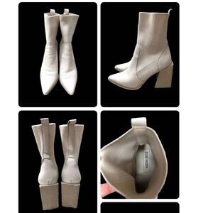 Steve Madden Women's Tackle Ankle Boot bone leather size 9.5 minor scuff heel