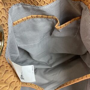 Steve Madden Women's Tote Shoulder Bag Large Orange Cognac Faux Leather