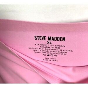 The product is a 5-pack of Steve Madden women's no-show boyshorts in sizes XL. The boyshorts come in a variety of colors including pink, mint, and black, with a solid pattern and a mid-rise. Made from a blend of nylon and spandex, these panties are machine washable and feature a tagless design for added comfort. The boyshorts are accented with the Steve Madden logo and are designed for love-themed occasions. These undergarments are opaque and offer compression in the buttocks and waist areas.