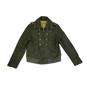 Steve Madden Womens Wool Blend Green Army Jacket Military Coat Size Medium