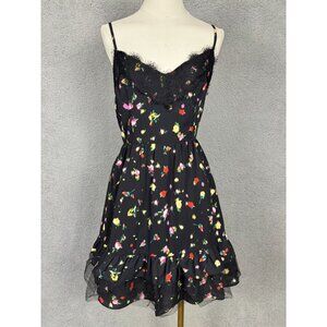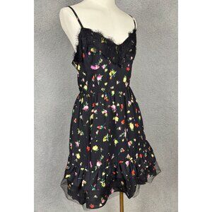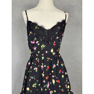 Steve Madden dress, floral dress, lace trim dress, ruffle dress, black floral dress, polyester dress, XL Steve Madden, multicolor dress, women's dress, party dress, casual dress, sleeveless dress, summer dress• Zipper closure for easy wear