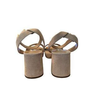 Steve Madden Mercerr Ankle Strap Sandals Womens 9.5 Tan Suede Block Heel Buckle