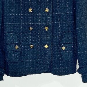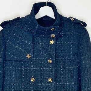 Steve Madden Wool Blend Tweed Military Double Breasted Black Jacket Size Large