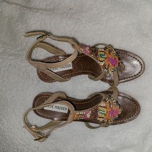 Steve Madden Y2K S. 6 Brown Leather Multi Color Beaded Bohemian Cork Wedges