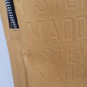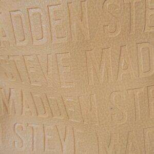 Steve Madden logo stamped in PU leather on the front. Strap is black and sporty, with Steve Madden logo.