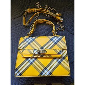 Steve Madden Yellow Plaid Top Handle Chain Strap Bag Purse