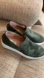 Steve Madden Zayna shiny green camo 1.5” height white soles sz9.5 run small