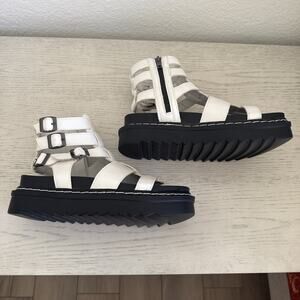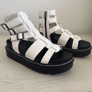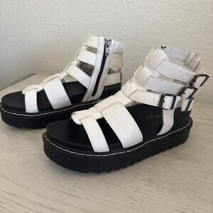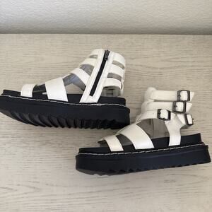 Steve Madden Zeeta Flatform Platform Sandals Black White Faux Vegan Leather 8.5