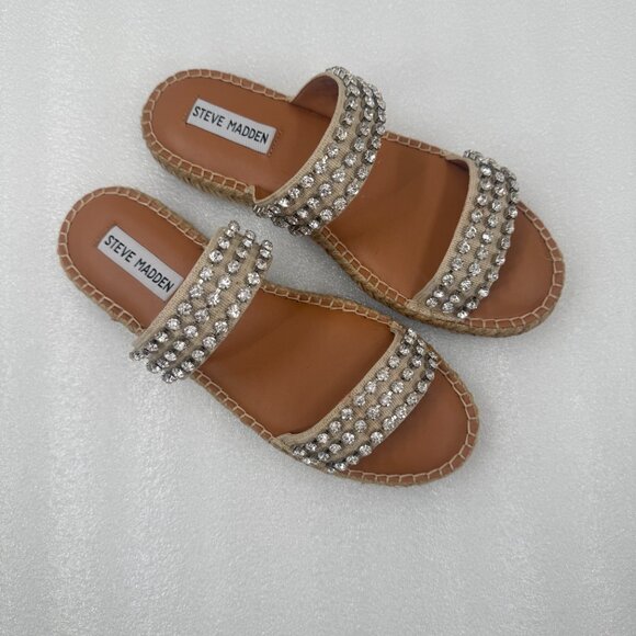 Steve Madden Zendaya Rhinestone Embellished Espadrilles Sandals Size 8 NEW
