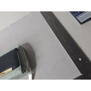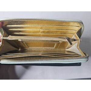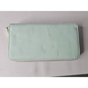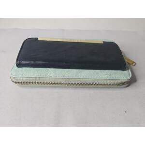Steve Madden Zip Around Wallet Clutch Mint Green & Black w/ Outside Pocket