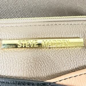 Steve Madden Zip Around Wallet Leather Black Taupe Purse
