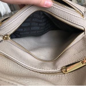 Medium sized backpack, like new worn twice. *the main zipper compartment is defective, if you unzip it to far the zipper pull comes of off one side* see last photo, it was like this when I bought it I didn’t notice until I used it. It doesn’t come open and can easily be fixed if the bottom is sewn back onto the bag. Includes 3 small zippered pockets, the main compartment, a zippered pocket in the main compartment and 2 side pockets. Straps are adjustable.