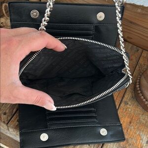 Steve Madden black crossbody leather wallet with silver hardware chain