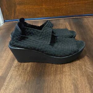 Steve Madden black wedge sandals.