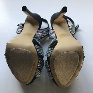 Steve Madden black/rhinestone stiletto heels size 6M, sexy ankle strap/T strap, great used condition, minor signs of wear, I appreciate you checking out my closet. I am a new seller and look forward to working with you. Accepting reasonable offers. Thank you