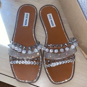 Barely used. Steve Madden size 10 sandals with rhinestones and studs! Still have the box and tissue paper!