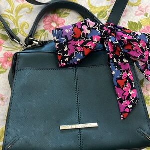 Steve Madden brand navy blue bag with colorful bow removable Crossbody strap good preowned condition. Please see pictures.