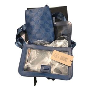 Steve Madden blue trim clear vinyl stadium crossbody bag with insert new