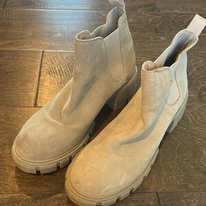 Elevate your style with these chic beige ankle boots. Perfect for any occasion.