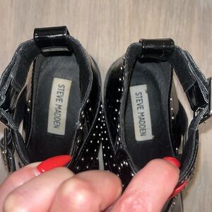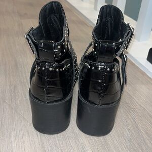 Steve Madden boots Andy Black Crocodile Studded Cutout Pointed-Toe Ankle Booties