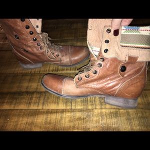 Steve Madden brown boot, red zipper, Aztec print lined, 8.5