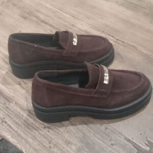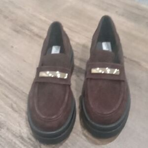 Steve Madden brown suede Rodrigo 2" platform loafer with gold detail. size 5.5 NWT