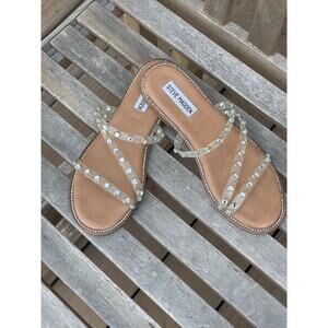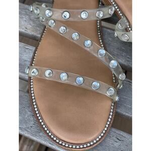 Steve Madden clear w/ rhinestones embellined flat sandals 7