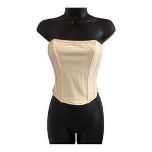 Steve Madden cream vintage washed look strapless stretch corset bustier style crop top size medium new
